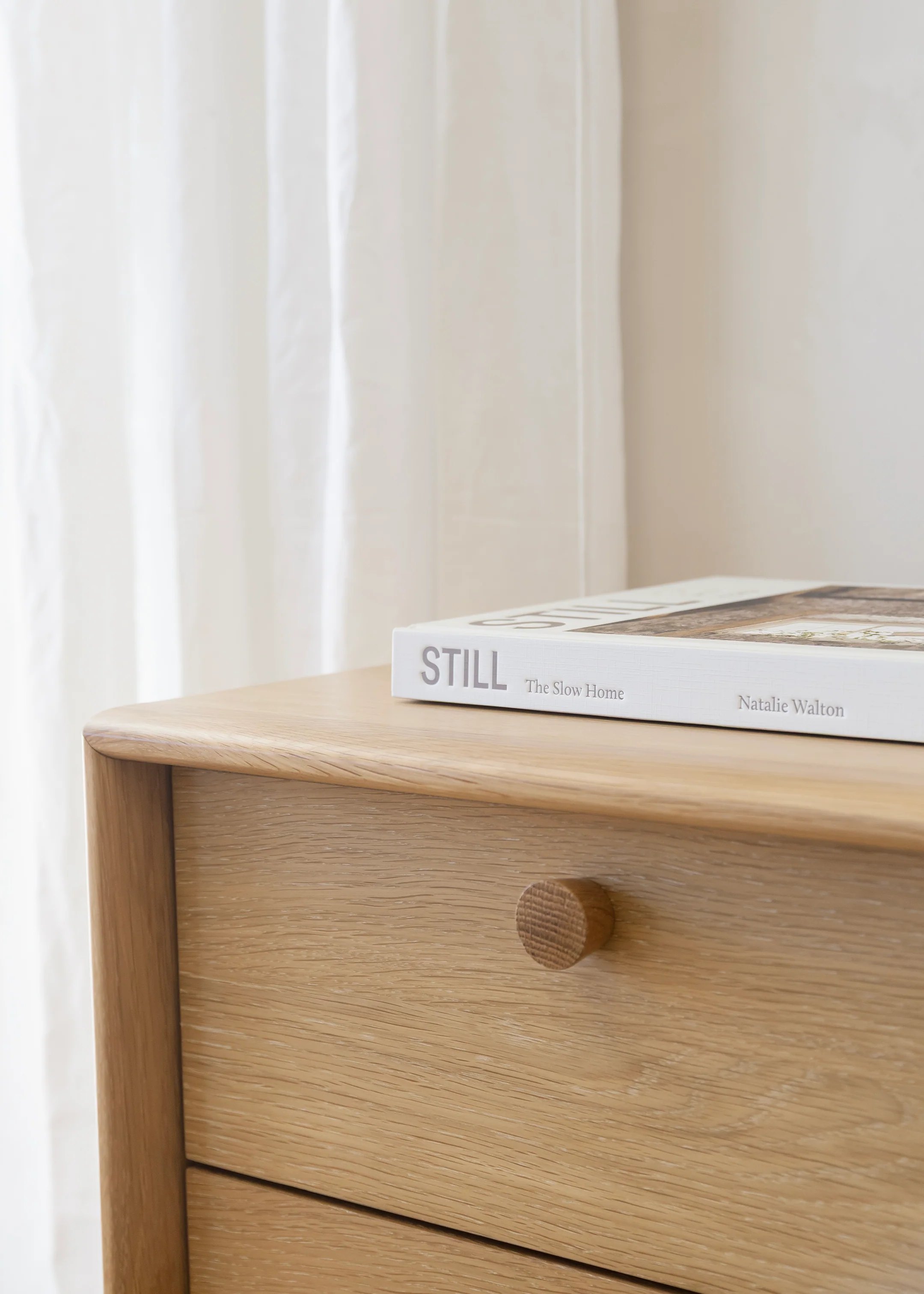 The Copenhagen 2 Drawer side table is a Scandi inspired bedside table. Functional and beautiful, the side table is constructed from solid oak with oak veneers and engineered mitred joints, soft-closing doors and drawers with high quality hardware. Perfect for a table lamp or your favourite book collection.