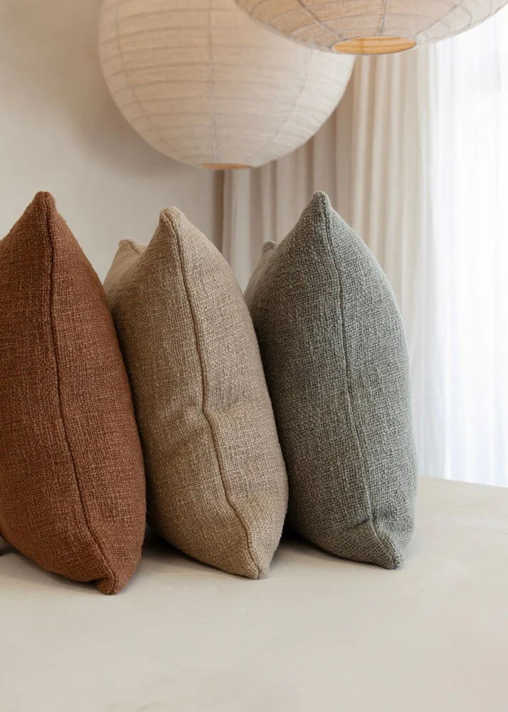 Bring harmony to interiors with exceptional texture and soft cocoa tones. Handwoven from thick slub yarns, the Cyprian's softness, artisan aesthetic and rustic texture makes it perfect for creating inviting and contemporary spaces. The minimal design makes the Cyprian a versatile pairing cushion, or a beautiful feature when used on its own.