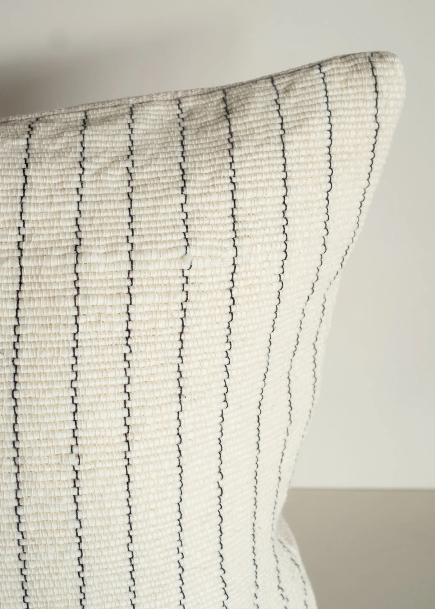 The Hokkaido cushion is a textural piece crafted with a delicate striped design in navy blue. Handwoven from a blend of wool and cotton, the tactile surface creates a cosy and inviting look.