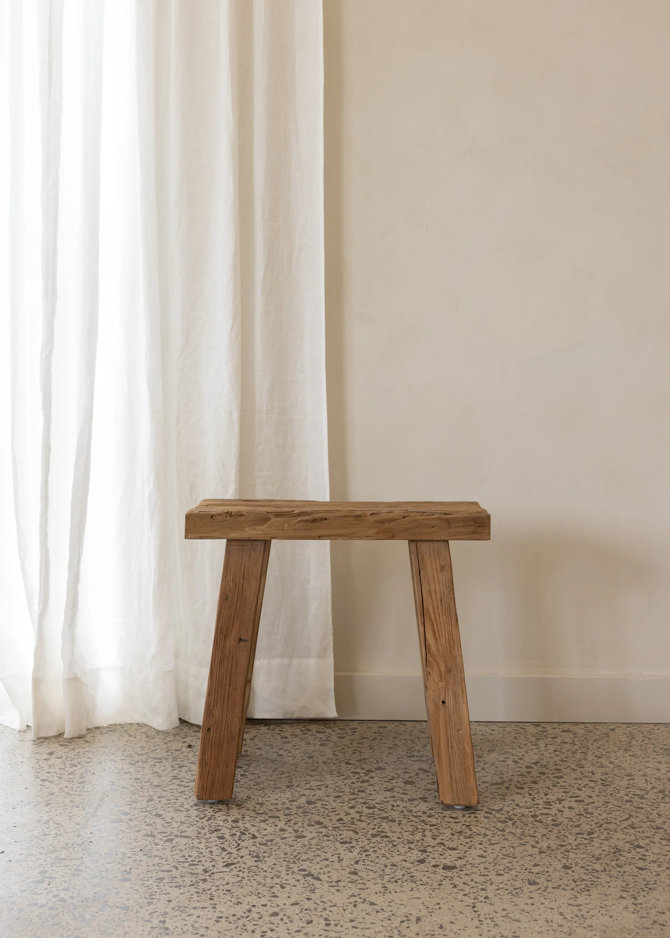 The Joel Stool is a versatile and practical addition to various settings. Crafted from reclaimed teak, this stool showcases the imperfect beauty of its natural wood grain. Whether placed in an entryway, dining room, or bedroom, the Joel Stool offers both functionality and aesthetic appeal. Use it as a seating option or to display decorative items.