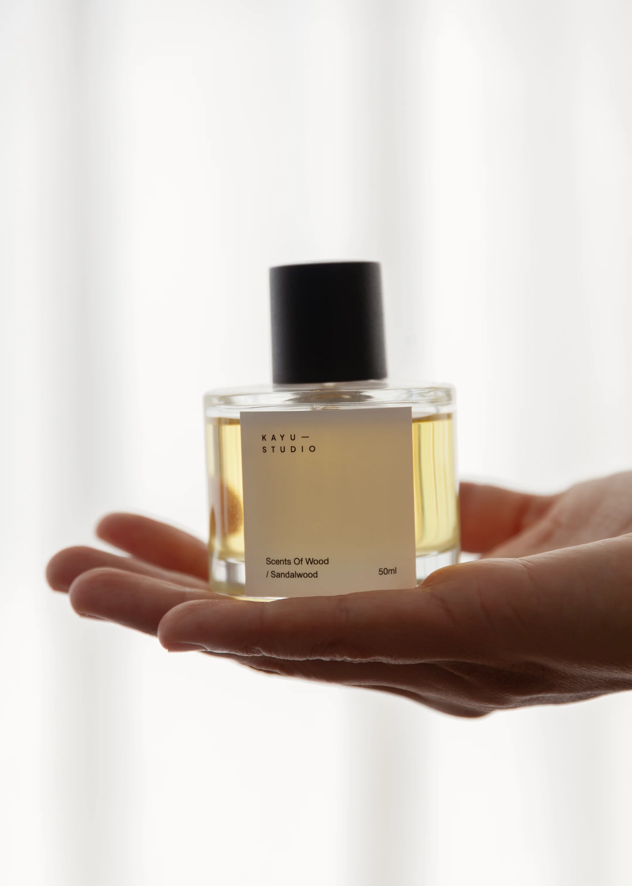Ethyl alcohol, Dipropylene glycol, Kayu Signature Essential Oil Blend (made with a blend of 45% pure essential oils, including vetiver and sandalwood, balanced with 55% nature-derived ambergris and opium)