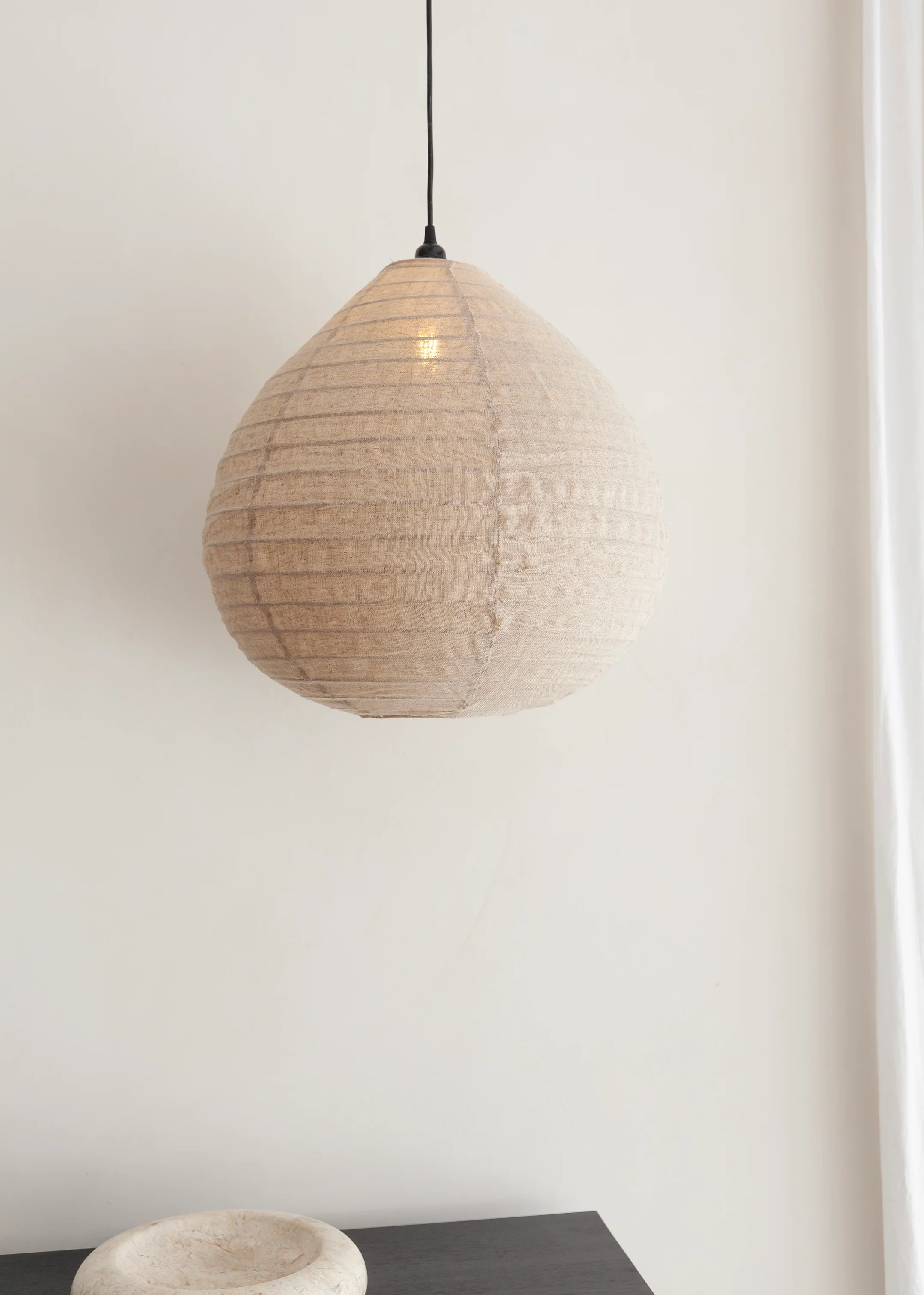 A beautiful linen pendant light with organic texture and form. The Malam Lantern creates a welcoming and restful feel to any space. Handmade from natural linen fabric, constructed on a bamboo frame.