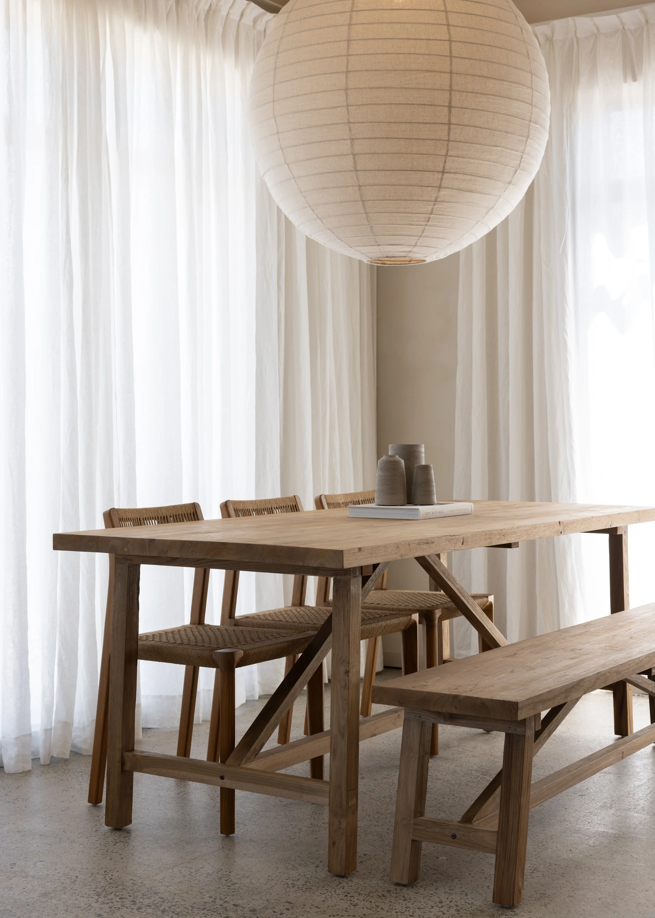 Our Reclaimed Teak Collection is sustainably sourced from salvaged buildings and structures across Indonesia. Skilled artisans carefully select and restore this hardwood using traditional techniques before crafting it into one of our signature Kayu Studio furniture pieces. Each piece carries its own character, with natural variations such as knots, distinct grain patterns, colour differences, remnants of nail marks, or small surface cracks. These features tell the story of the wood's past and add to its charm, they are not considered faults. Read more about the process behind production of these pieces on our journal.